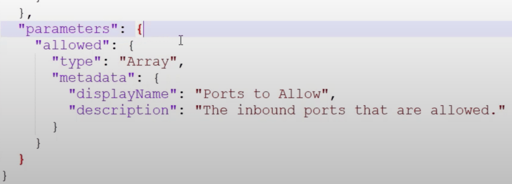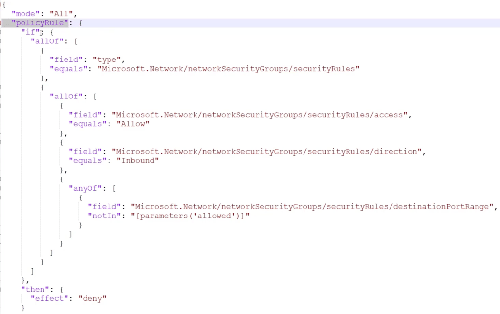 securityRules: distinationPortRange notIn [parameters(‘allowed’)]